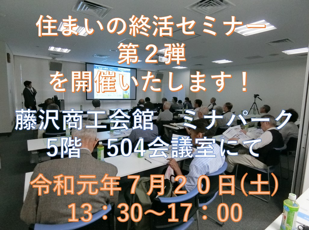 令和元年7月20日 土 に 住まいの終活セミナー第2弾 を開催します 藤沢商工会館 ミナパーク Yellhouse