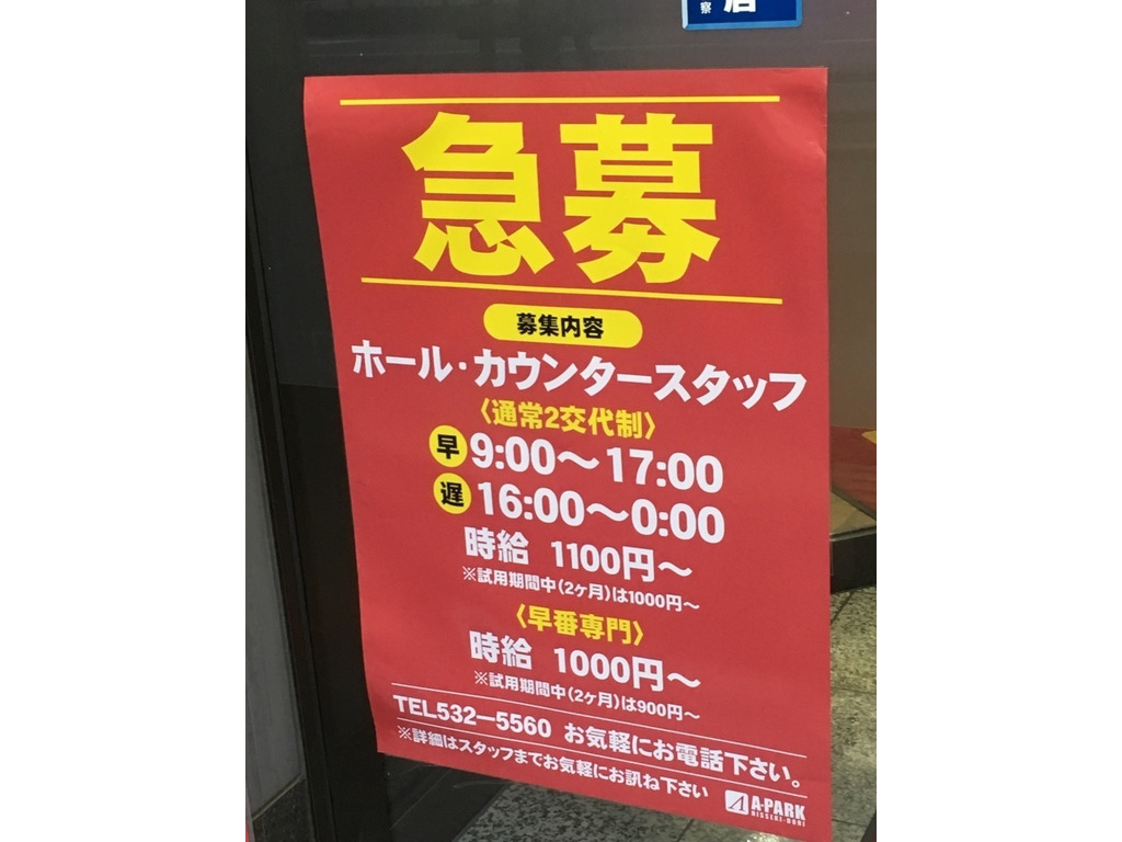 Aパーク 日赤通り店のアルバイト パート求人情報 Joblist ジョブリスト スマホであつめる みんなの街の求人はり紙