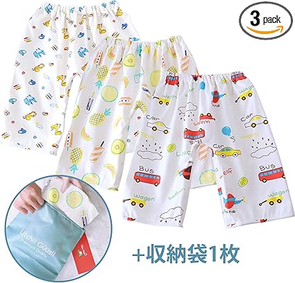 Amazon おねしょ対策ケット 3枚入 ズボンタイプ おねしょ対策 ズボン 防水 通気 天然綿100 かわいい動物 車 男の子 女の子 恐竜 車 パイナップル ウエスト50 60cm 3 5歳 収納袋付き ベビー マタニティ ベビー マタニティ 通販