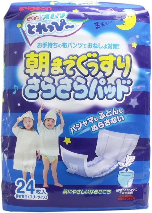 Amazon 夜のおねしょ対策に朝までぐっすり ピジョン オムツとれっぴ 朝までぐっすりさらさらパッド 夜用24枚 男女共用 ピジョン 尿とりシート パッド