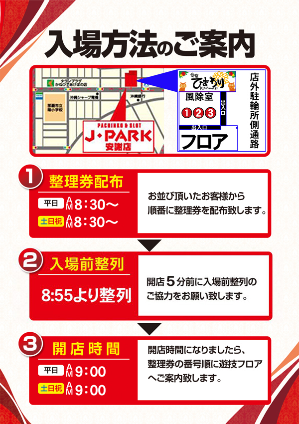 j park安謝店 ホール情報 住所 アクセス 入場ルール 並び 抽選 営業時間 パチンコ パチスロ機種解析 店舗情報 パチ7