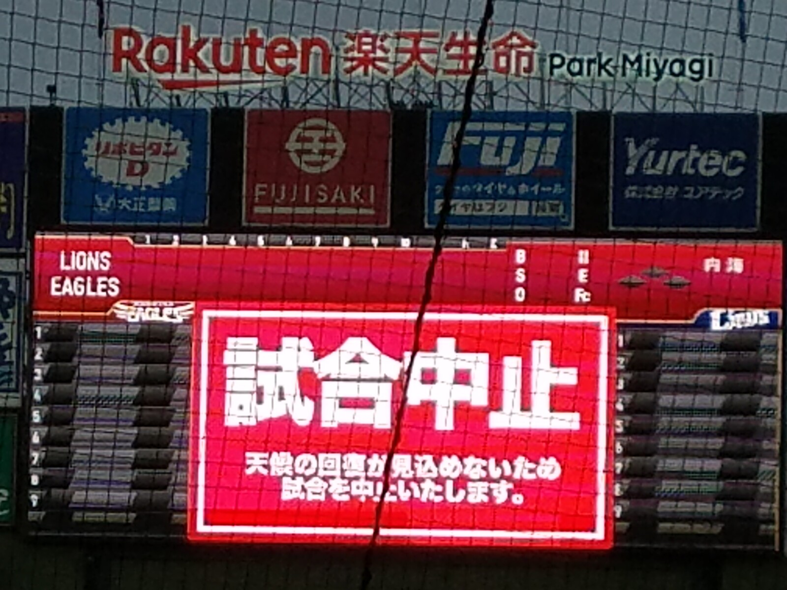 Kobo パーク 宮城 雨中止